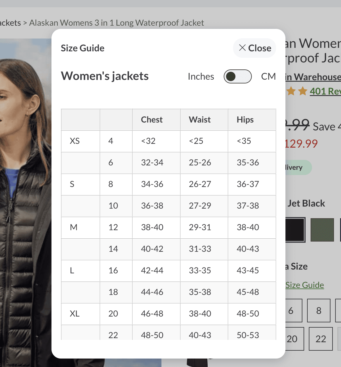 Repositioned size guide CTA before the point of decision
